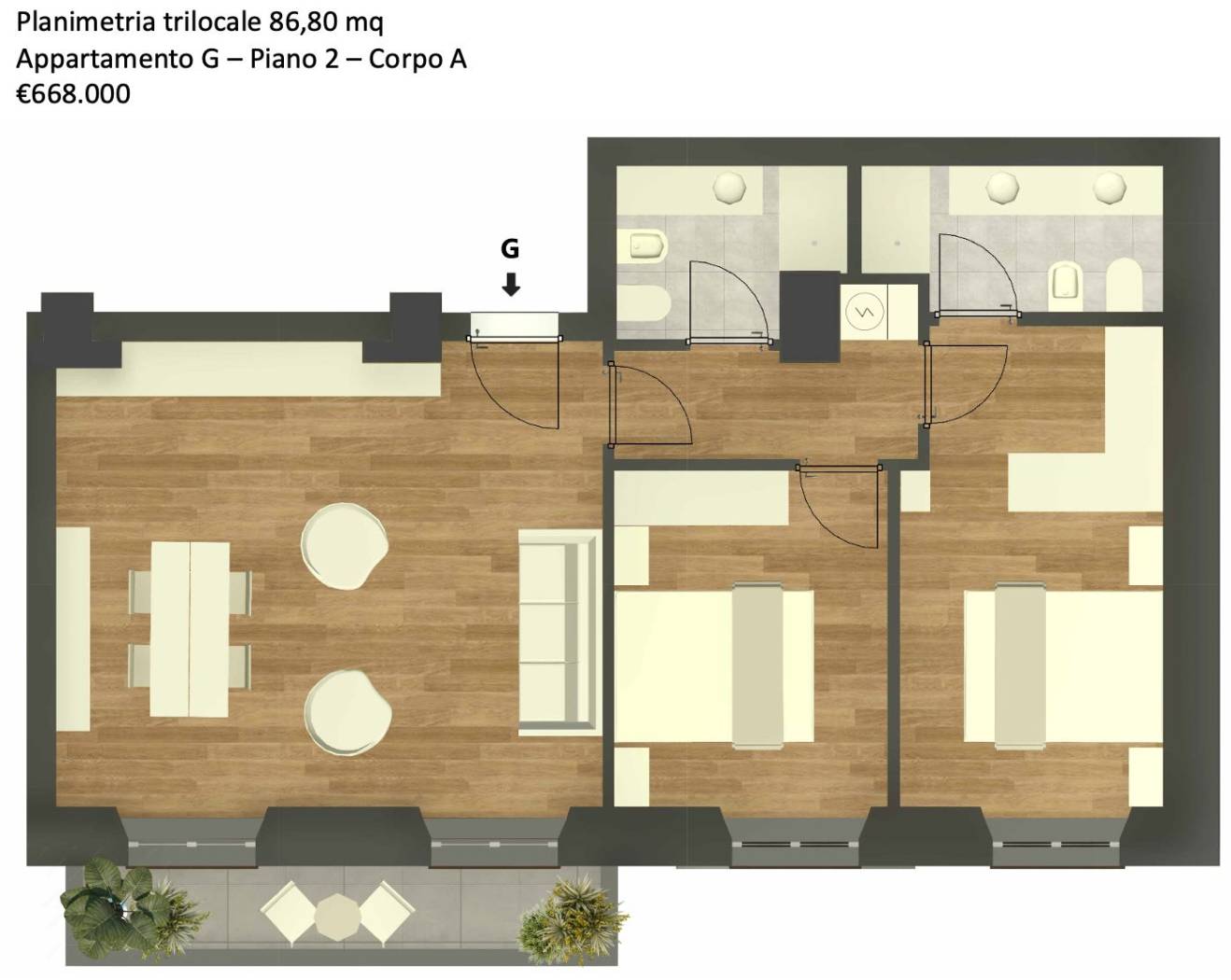 Trilocale 86,80 mq a Eu.668.000 – Dimora Bassi